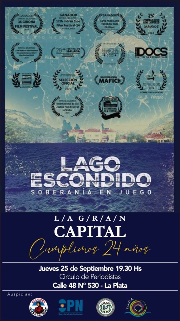 Este documental narra la Séptima Marcha al Lago escondido en 2023, con una cámara que va registrando los hechos de manera directa, pero además indaga sobre intereses geopolíticos, lobbys empresariales/judiciales y complicidades de algunos sectores de la política argentina con intereses extranjeros.