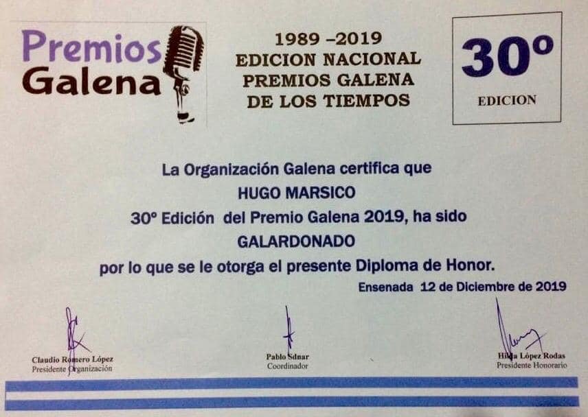 El Círculo de Periodistas de la Provincia de Buenos Aires felicita al vicepresidente Hugo Marsico por la obtención de la distinción del premio “Galena” 2019.