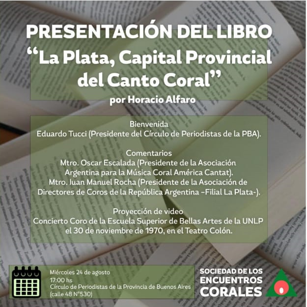 Presentacion del libro “La Plata, Capital Provincial del Canto Coral” por Horacio Alfaro